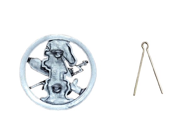 Il fregio da basco del 28° Reggimento “Pavia” è un simbolo che racchiude in sé la storia, l’onore e l’identità di uno dei più antichi reparti dell’Esercito Italiano. Realizzato in metallo argentato, il fregio rappresenta con eleganza e forza l’appartenenza al reggimento, combinando elementi araldici e tradizionali dell’arma di fanteria.